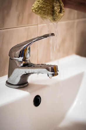 Começamos por passar sabão em barra usando um pano humedecido no lavatório, bidé e banheira espalhando toda aquela maravilhosa espuma que ele faz em todos os cantinhos. Depois de enxaguar, pulverizamos com uma mistura de água e vinagre (uma parte de água e uma de vinagre) e passamos um pano húmido. Tudo a brilhar e desinfectado!